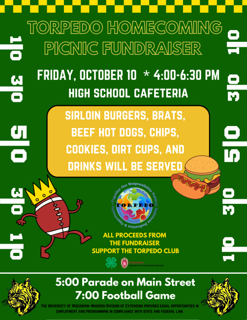 TORPEDOS Homecoming Picnic Fundraiser Written by TIERANY ANN RUGG Posted on September 15, 2025 Share Share:Share on FacebookShare on X (Twitter) Share via EmailCopy LinkCopied! This page is optimized for printing